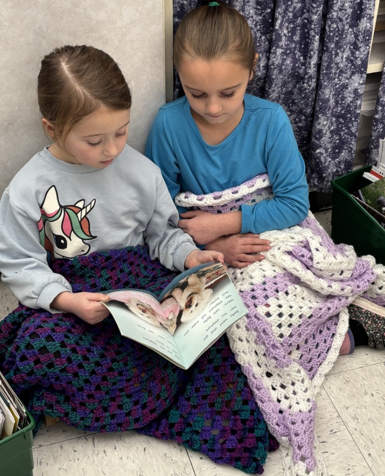 First Grade students in Ms. Armstrong's class at Congin each received a beautiful, home-made crochet lap blanket from a wonderful group at the Westbrook Warren Congregational Church called Warm Hugs. The group is organized by long-time Westbrook substitute teacher and friend Mrs. Kathy Blake. What a beautiful and cozy way to read on a cold winter day! |